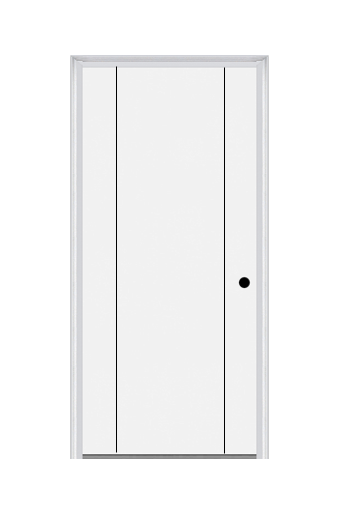 MMI Decorative Flush 6'8" Or 8'0" Fiberglass Smooth Finger Jointed Primed Exterior Prehung Door