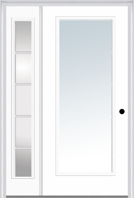 MMI Full Lite 3'0" X 6'8" Fiberglass Smooth Exterior Prehung Door With 1 Full Lite Glass SDL Grilles Sidelight 59
