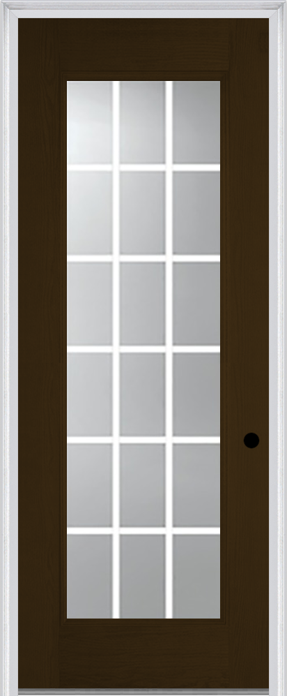 MMI Full Lite 3'0" X 8'0" Fiberglass Oak 18 Lite Clear Low-E Glass Contour White Grilles Between Glass Finger Jointed Primed Exterior Prehung Door 612 GBG