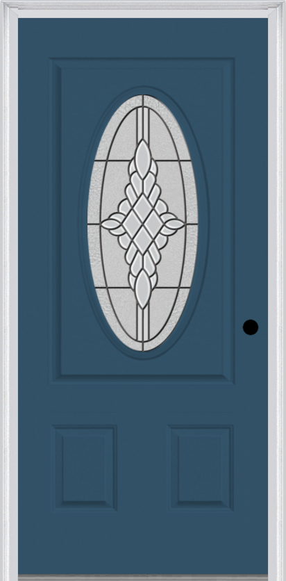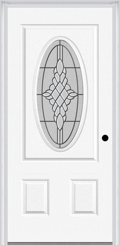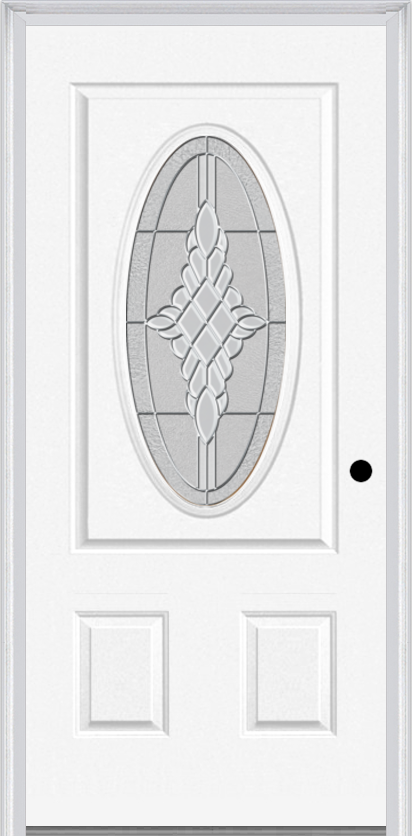 / MMI Small Oval 2 Panel 6'8" Fiberglass Smooth Grace Nickel Or Grace Patina Decorative Glass Exterior Prehung Door 949