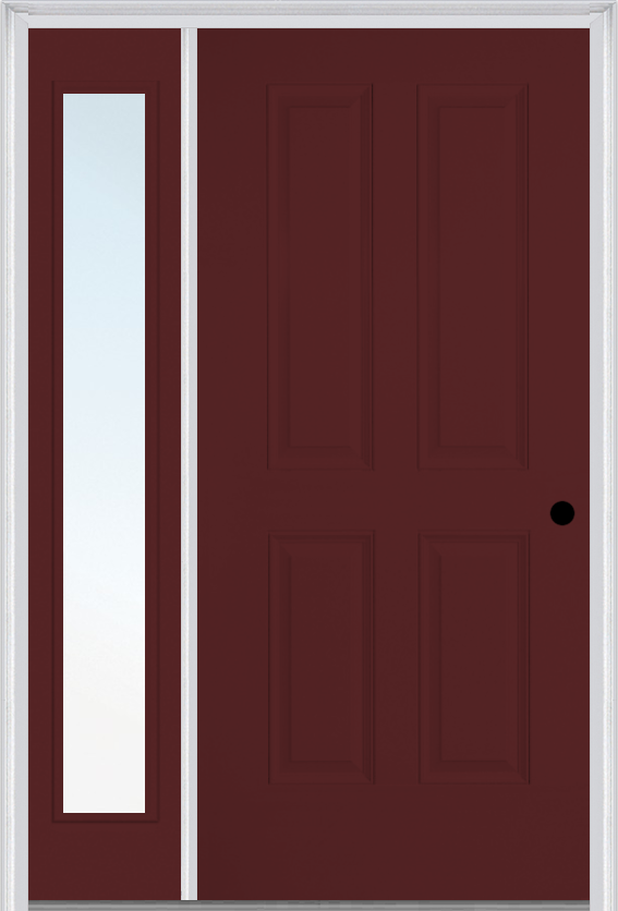 MMI TRUE 4 PANEL 3'0" X 6'8" FIBERGLASS SMOOTH EXTERIOR PREHUNG DOOR WITH 1 FULL LITE CLEAR OR PRIVACY/TEXTURED GLASS SIDELIGHT 40