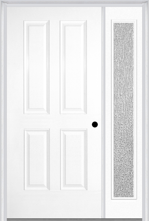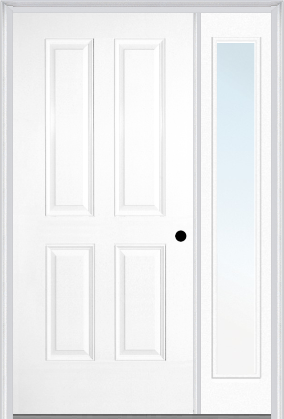 MMI true 4 panel 3'0" x 6'8" fiberglass smooth exterior prehung door with 1 full lite clear or privacy/textured glass sidelight 40