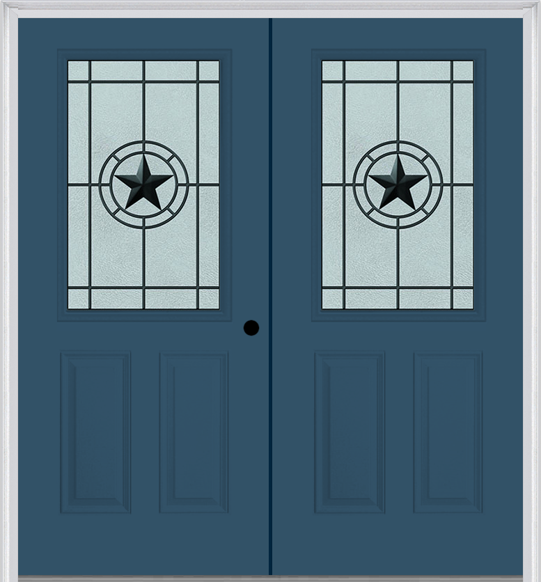 MMI twin/double 1/2 lite 2 panel 6'8" fiberglass smooth elegant star wrought iron decorative glass exterior prehung door 684