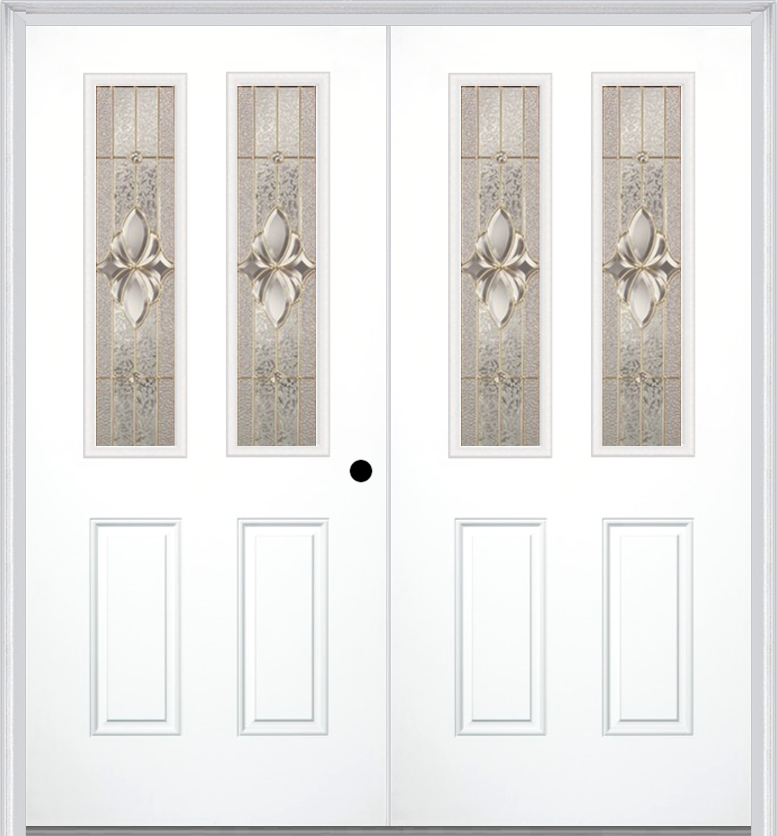 MMI twin/double 2-1/2 lite 2 panel 6'8" fiberglass smooth heirlooms brass or heirlooms satin nickel decorative glass exterior prehung door 692