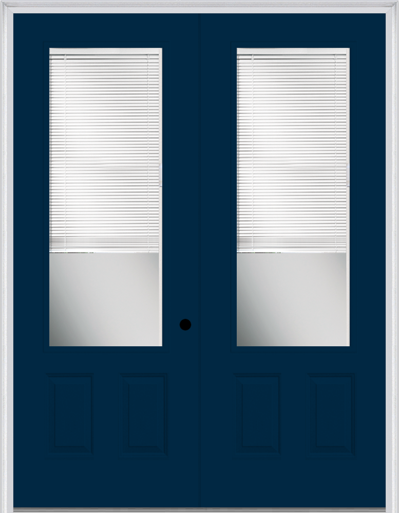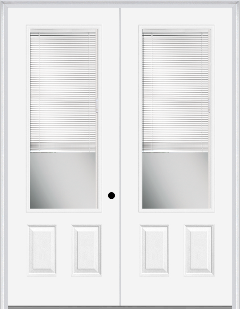 MMI twin/double 3/4 lite 2 panel raise/lower blinds 6'0" x 8'0" fiberglass smooth clear glass exterior prehung door 759 rlb low-e option