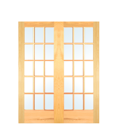 MMI TWIN/DOUBLE 15 LITE CLEAR 6'8" X 1-3/8 PRIMED PINE OR PINE TRUE DIVIDED OVOLO TEMPERED GLASS INTERIOR FRENCH PREHUNG DOOR